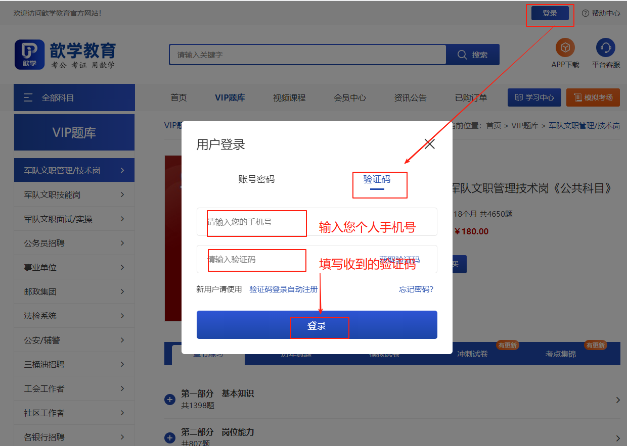 歆学题库不需要注册填写信息,首次登录直接通过验证码登录即可!登录即完整会员注册!